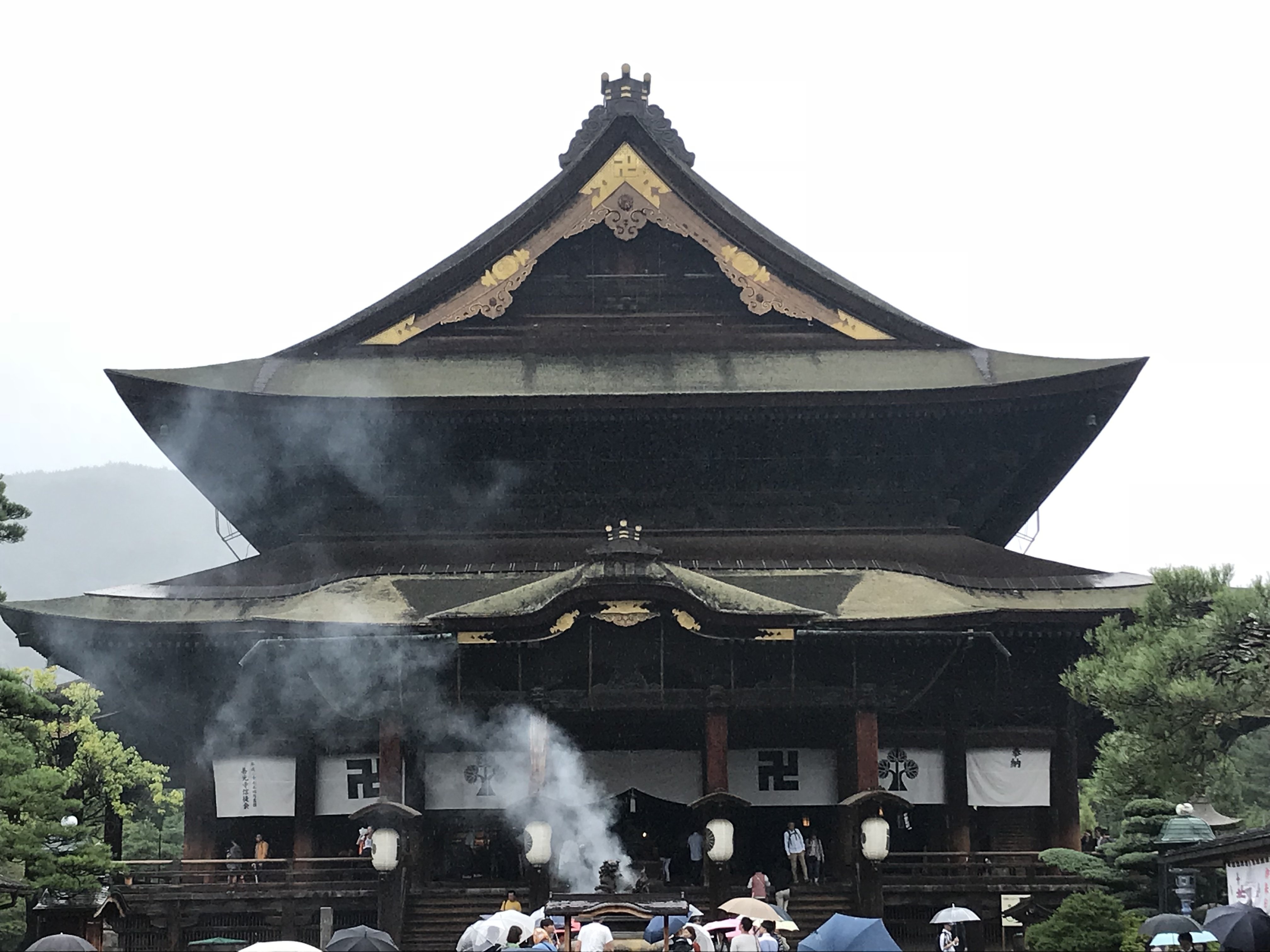 善光寺の本堂を初めて見たときに,どっしりとした安定感から来る何か「数学的な美しさ」のようなものを感じた。縦横の比だったり,二重になった屋根の横幅の比だったり,至るところに黄金比が隠されているのではないか。