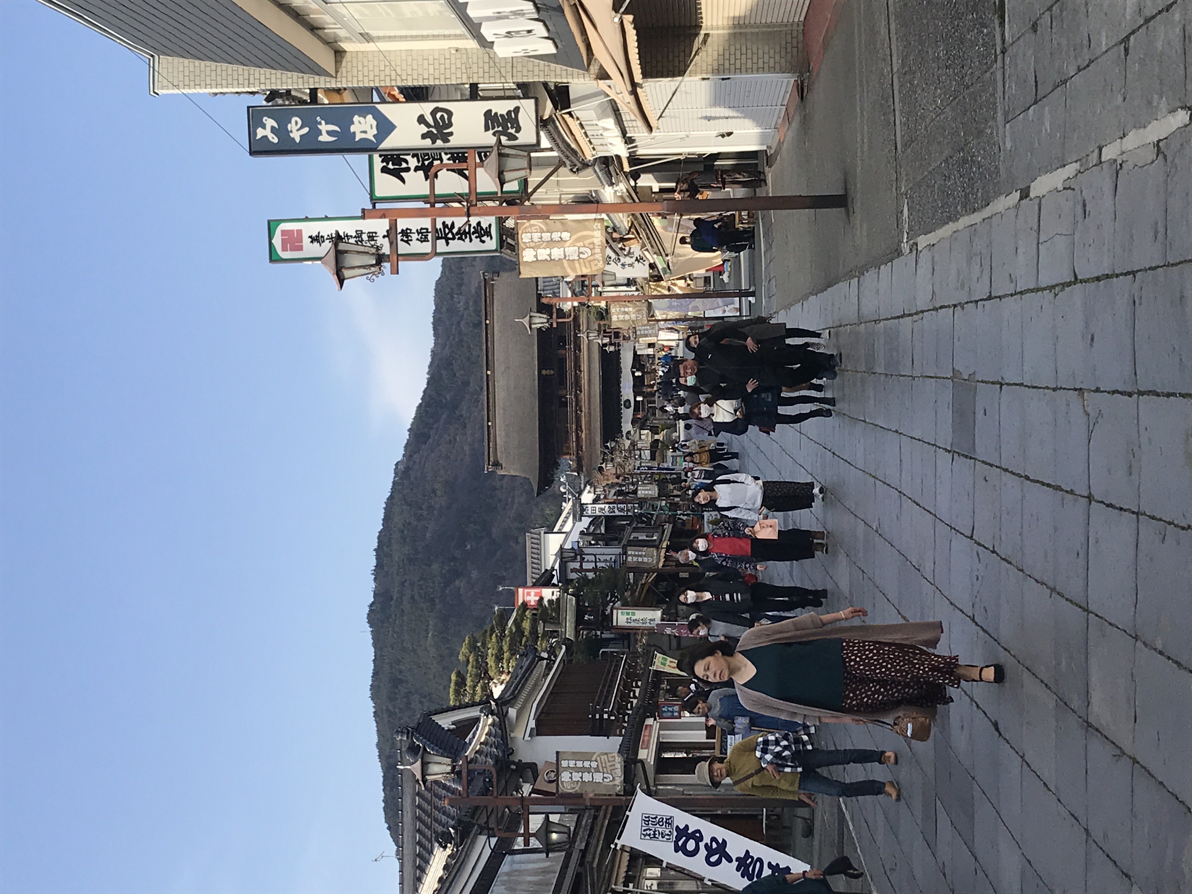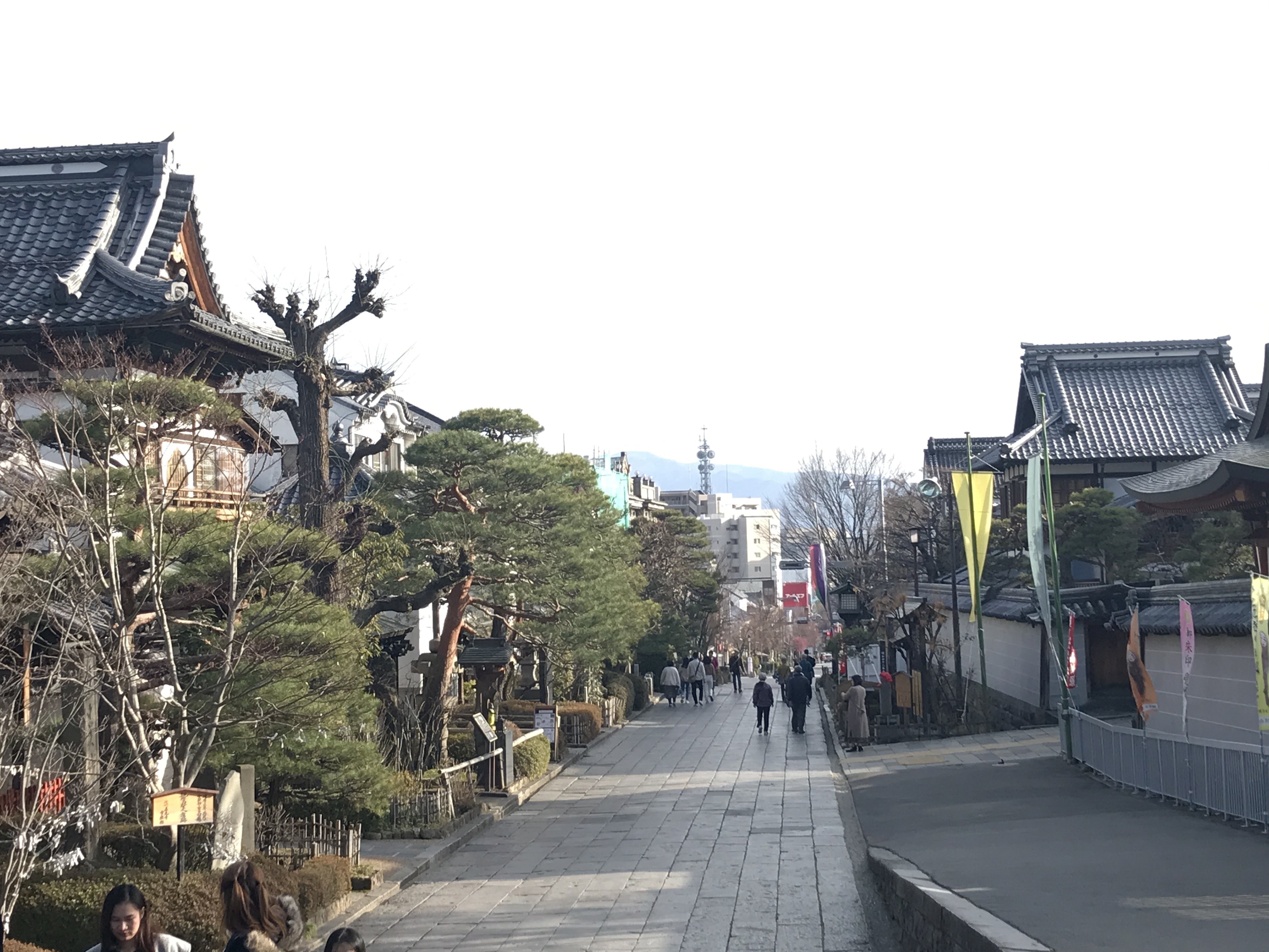 善光寺の前を走る石畳。 本堂や山門や仁王門だけでなく,ここにも美しさを感じる。 道の幅,石1つ1つの縦横の長さなど,何を意図してこの大きさにしたのか。何か意図があるように感じられる。深読みしすぎか? また,道幅に対して,12列の石が並ぶ。 12。約数が多い数字。30日周期,12回で1年。時計の文字盤は12分割 …なにか意味がありそう。