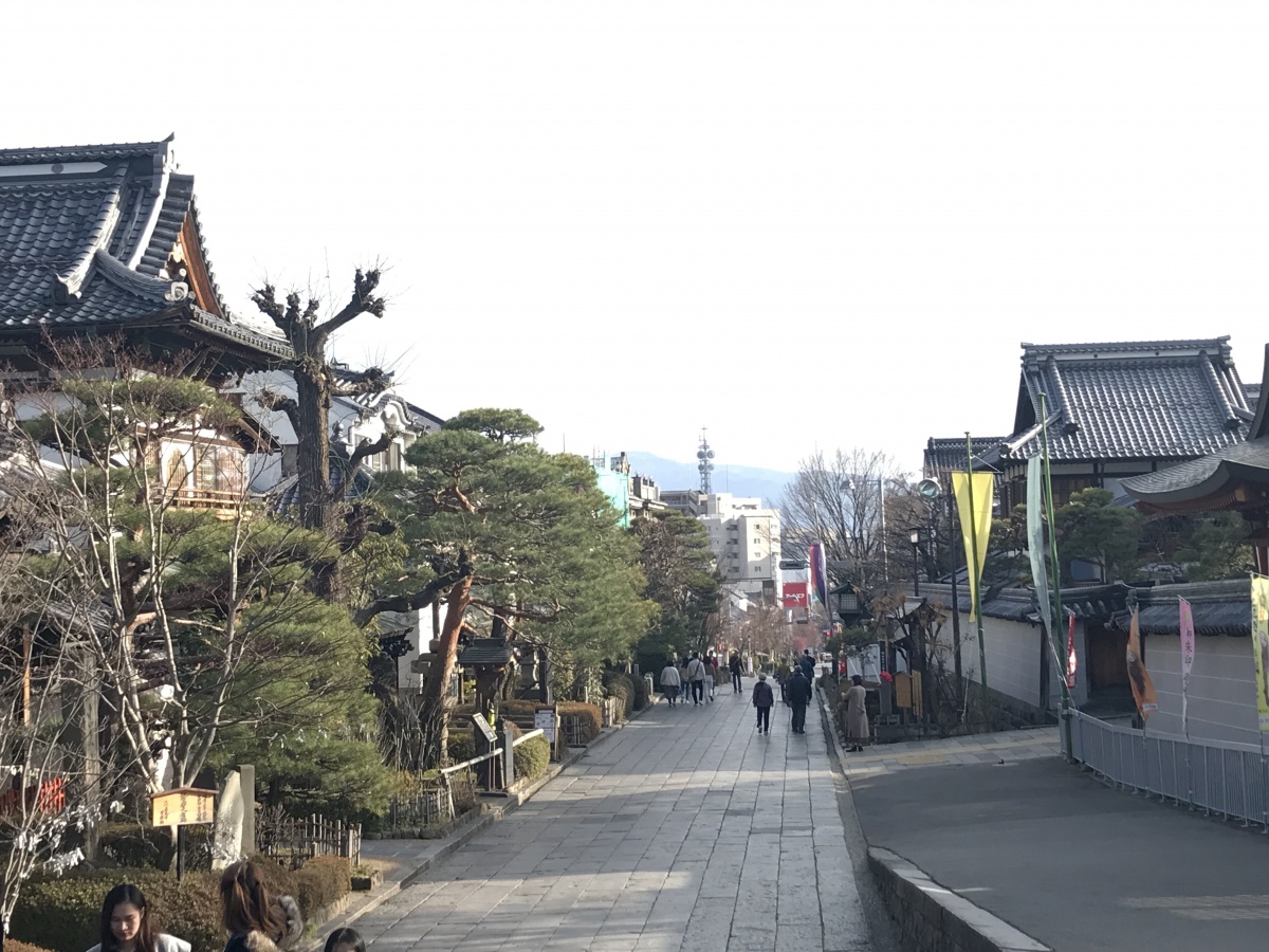 善光寺の前を走る石畳。