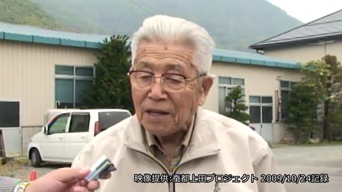 【話】佐藤一助さん(藤本工業) 【備考】2009/10/24 藤本蚕業歴史館の外 蚕都上田巡回ツアー記録 (蚕都上田プロジェクトアーカイブ映像記録)
