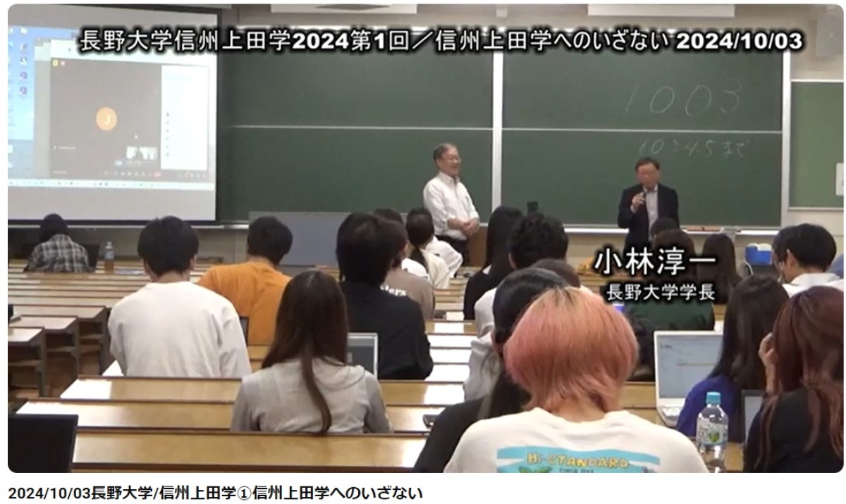 【1】信州上田学へのいざない/デジタルコモンズ&地域キュレーション(第1回10/03) 79分 学長あいさつ:小林淳一(長野大学学長) 第1回講座担当:前川道博(企業情報学部教授)