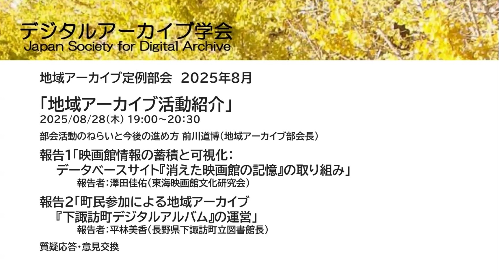 デジタルアーカイブ学会地域アーカイブ部会