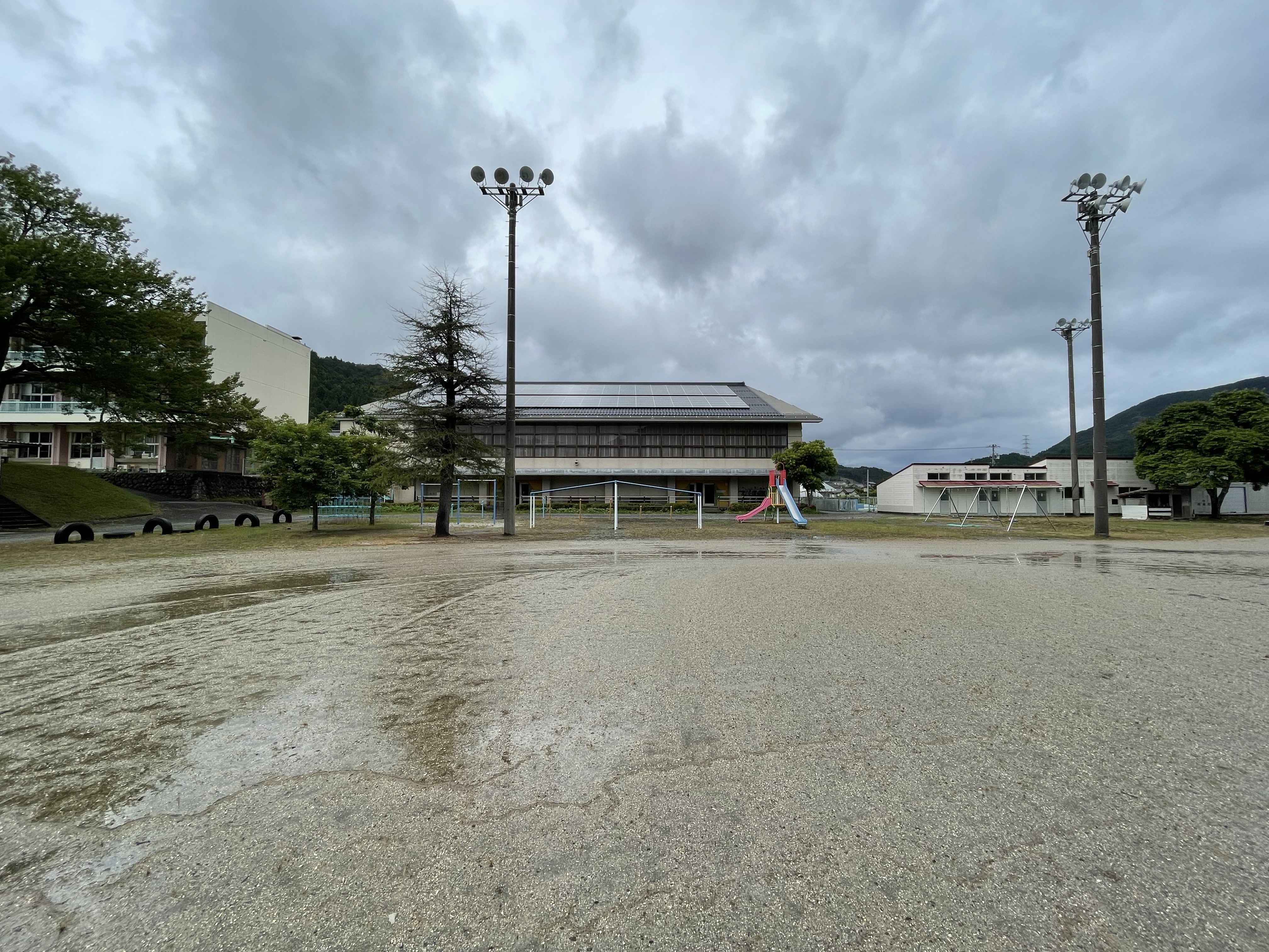 学校のグラウンドは水はけが悪く、雨が降るととんでもないことになります。