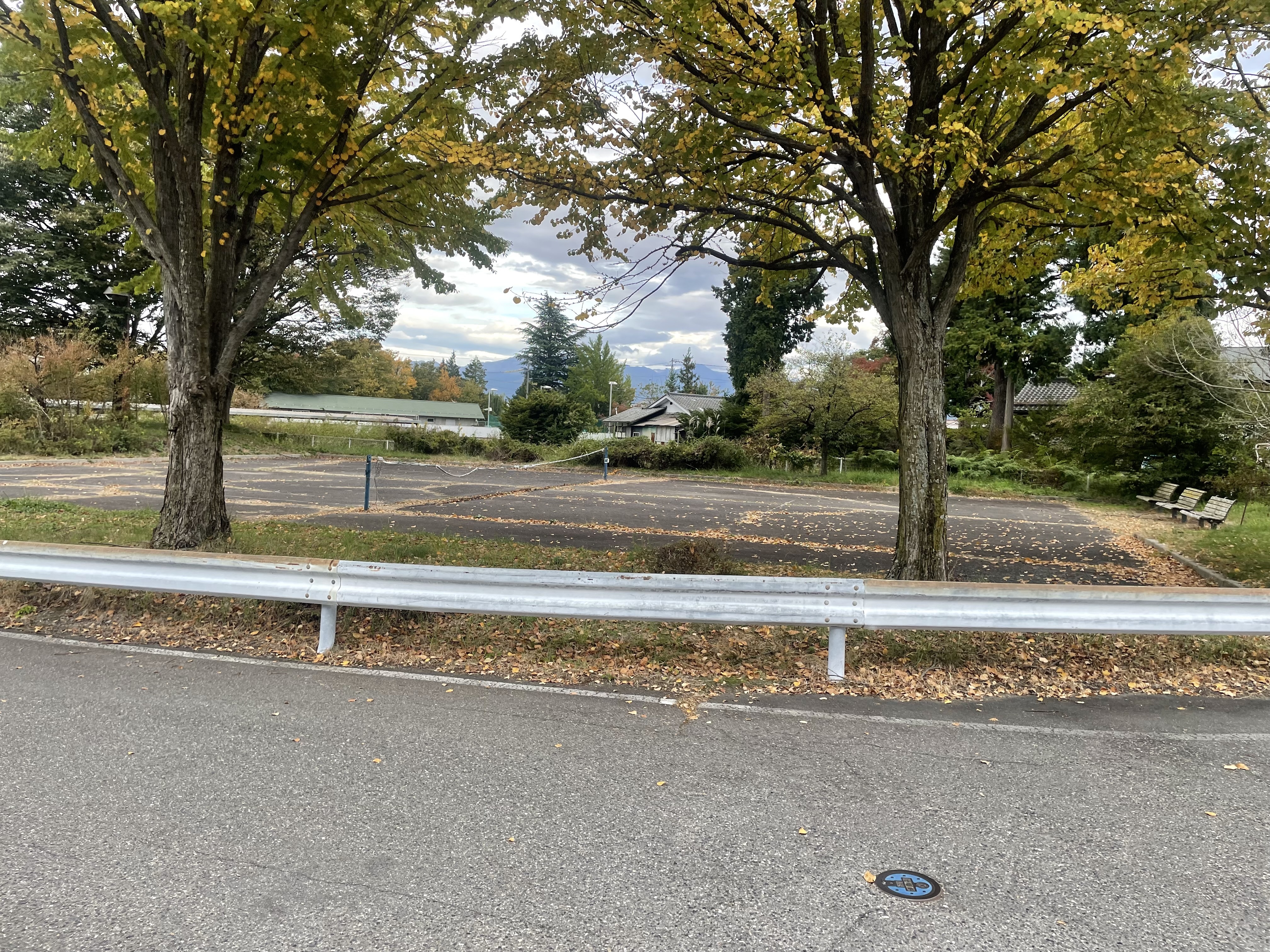 突如現れる寂れたコンクリート。 ところどころヒビが入っていて、誰かが使用しているところは見られない。 このコンクリート広場の真ん中にはたるんだネットがかかっていた。 おそらくかつてはテニスコートとして使われていたのだろう。 何かに使えそう。