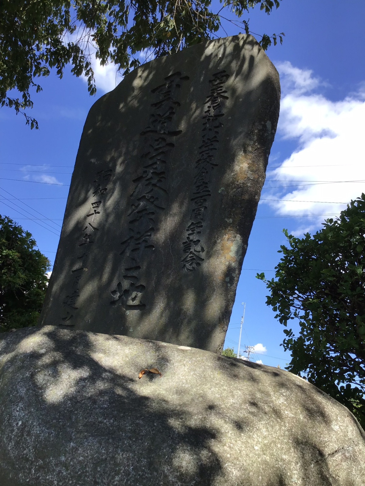 西春近北小学校の開校百周年記念につくられた石碑。前身である貫道学校跡地にたてられています。