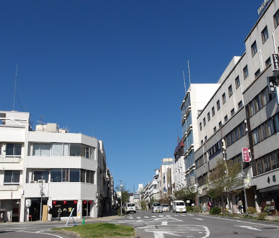 小諸駅前から商店街をの通りを見上げると、電信柱が一本もない区域があります。そうその通りは「無電柱化」されています。地中に電線が埋められており、大きな空が広がって見える景観だけでなく、防災の視点でも大切なことなんです!ぜひ見てみてください。