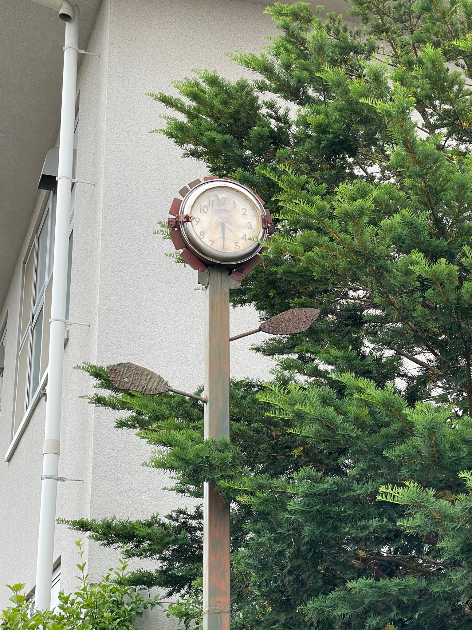 時計の針は止まったまま。昔ながらのこの時計はいつからあるのだろう。
