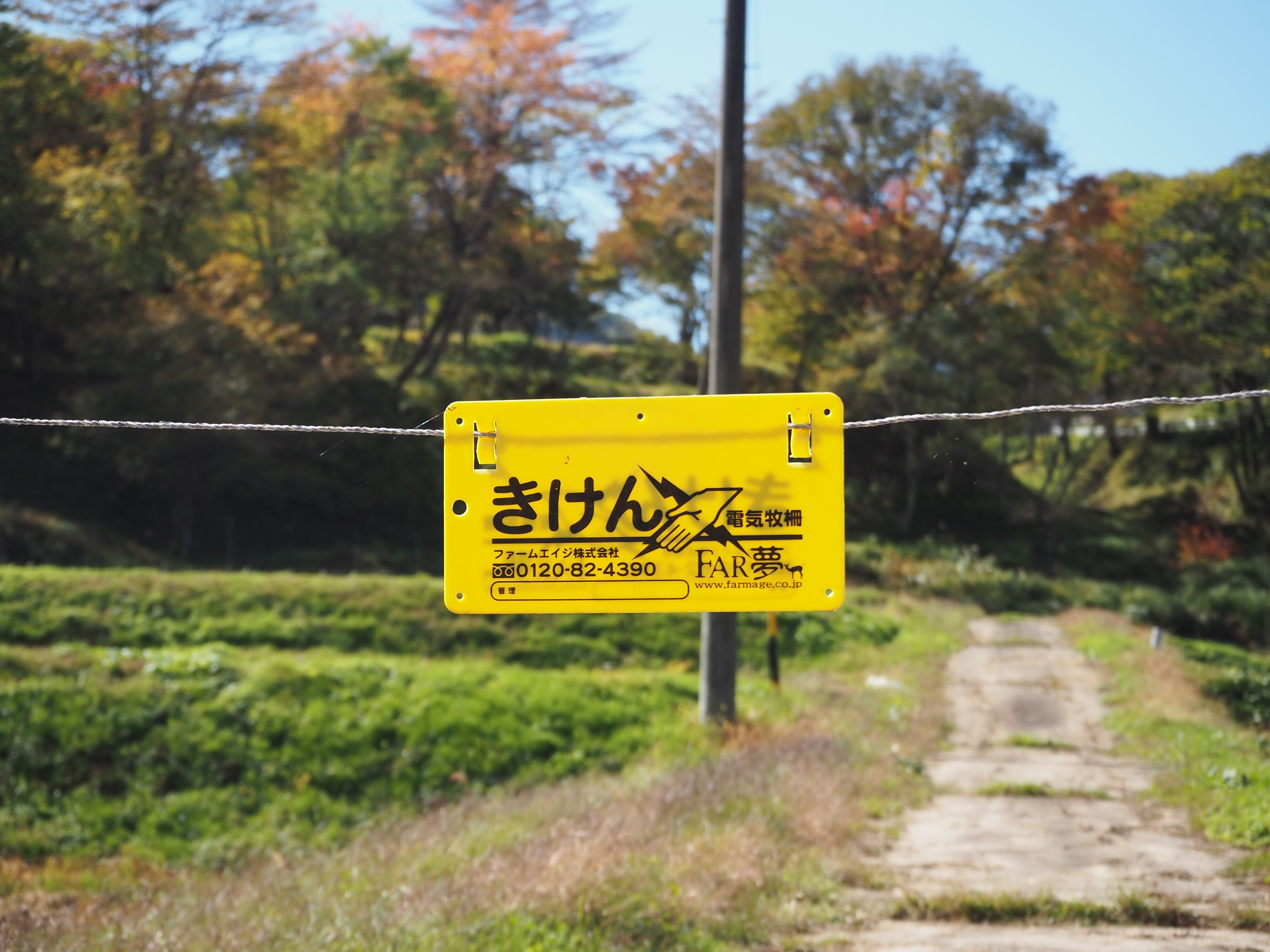 電気柵。 獣害対策に追われる地域です。