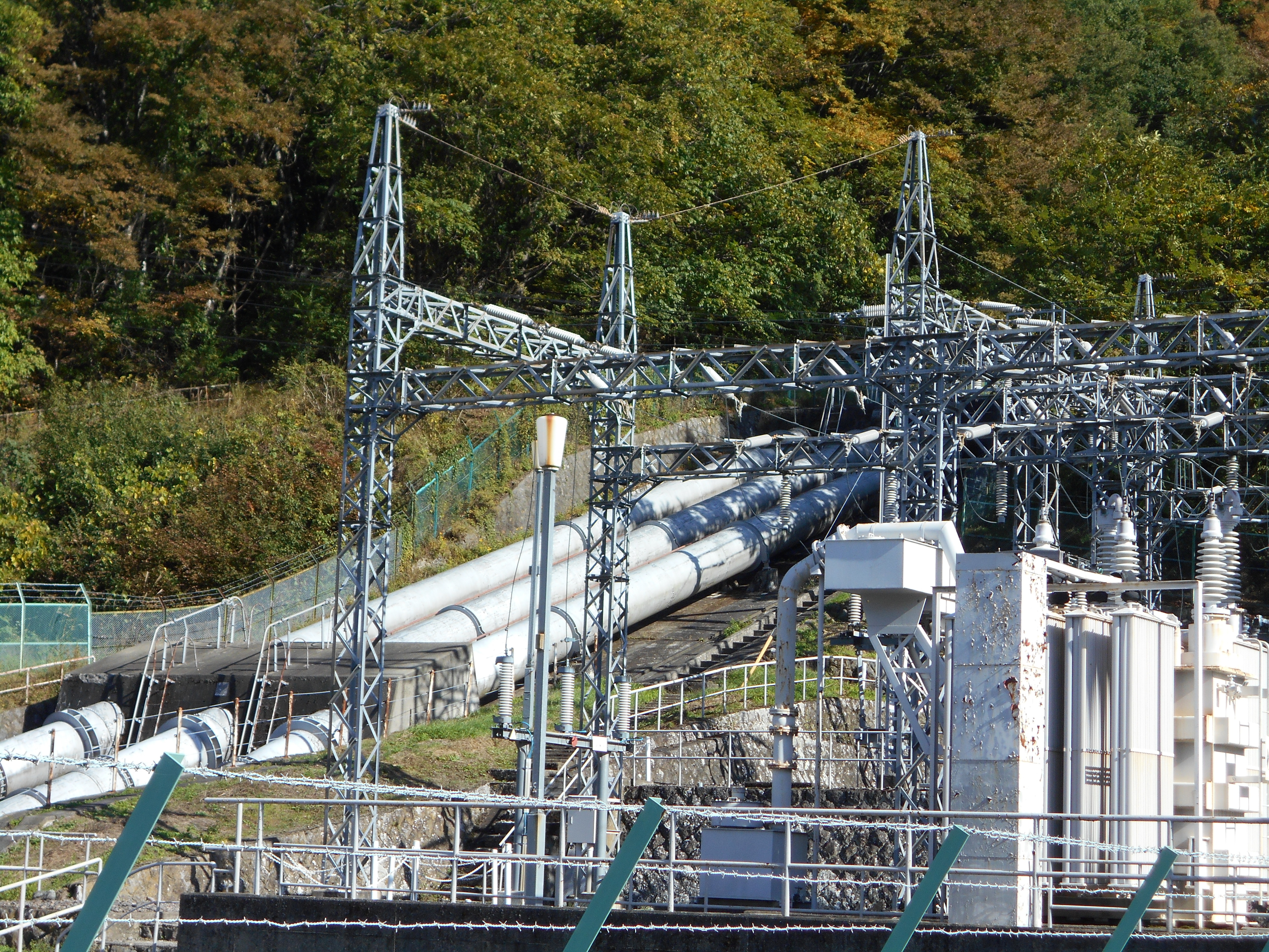 上=太陽光発電のパネル。晴天率が高いことを生かしたものでしょうか? 下=東京電力リニューアブルパワー(株) 土村第一発電所(水力発電)山がちな気候を生かしたものでしょうか?