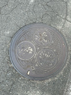 学校の近くに花が描かれたマンホールがありました。学校に帰ってくると、同じマンホールが学校の昇降口にもありました。この花は何という花なのだろう?