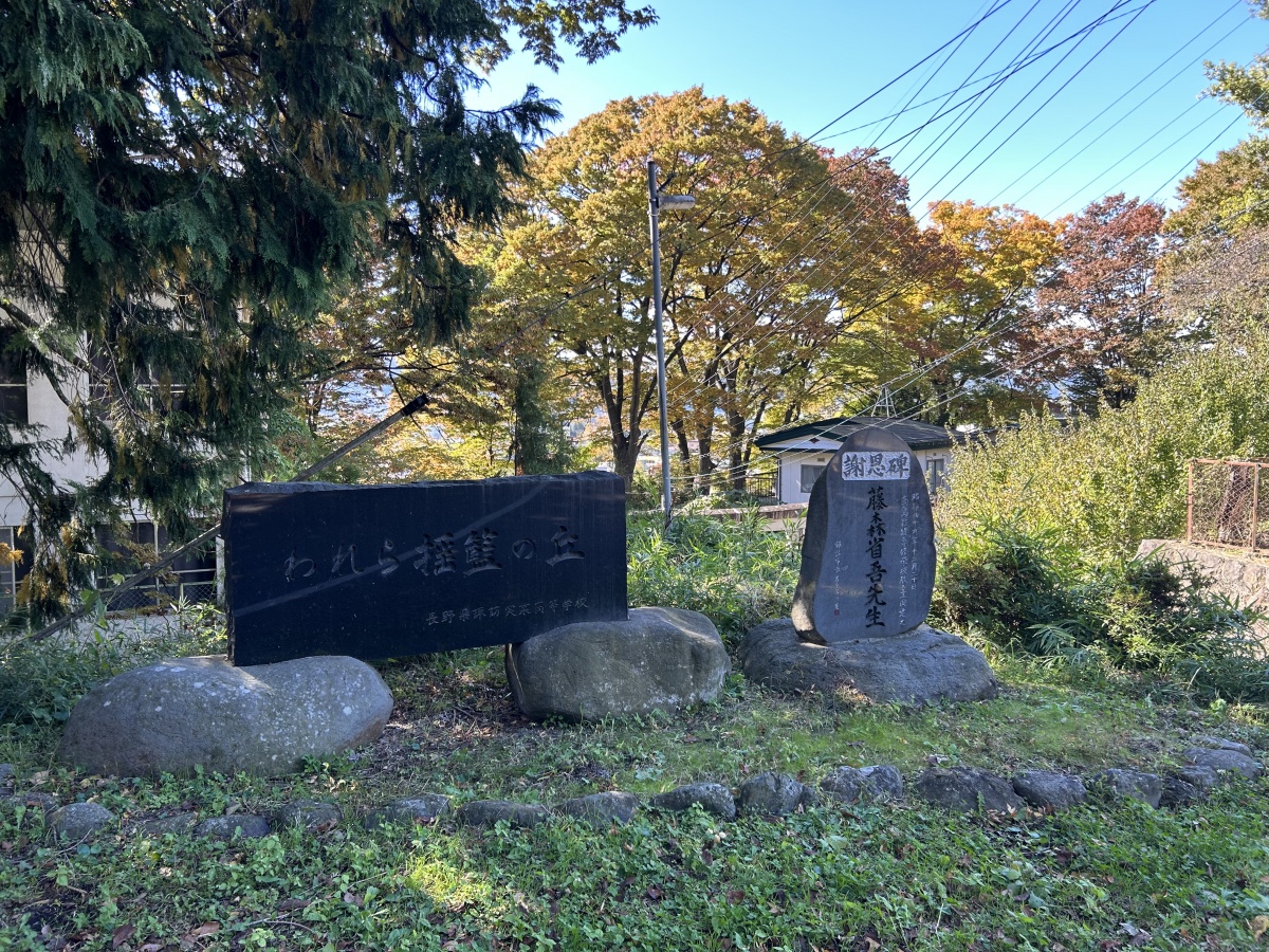 石碑には高校名と人物の名前が書いてありました。 後ろの建物と関係があるのか、わかりません。