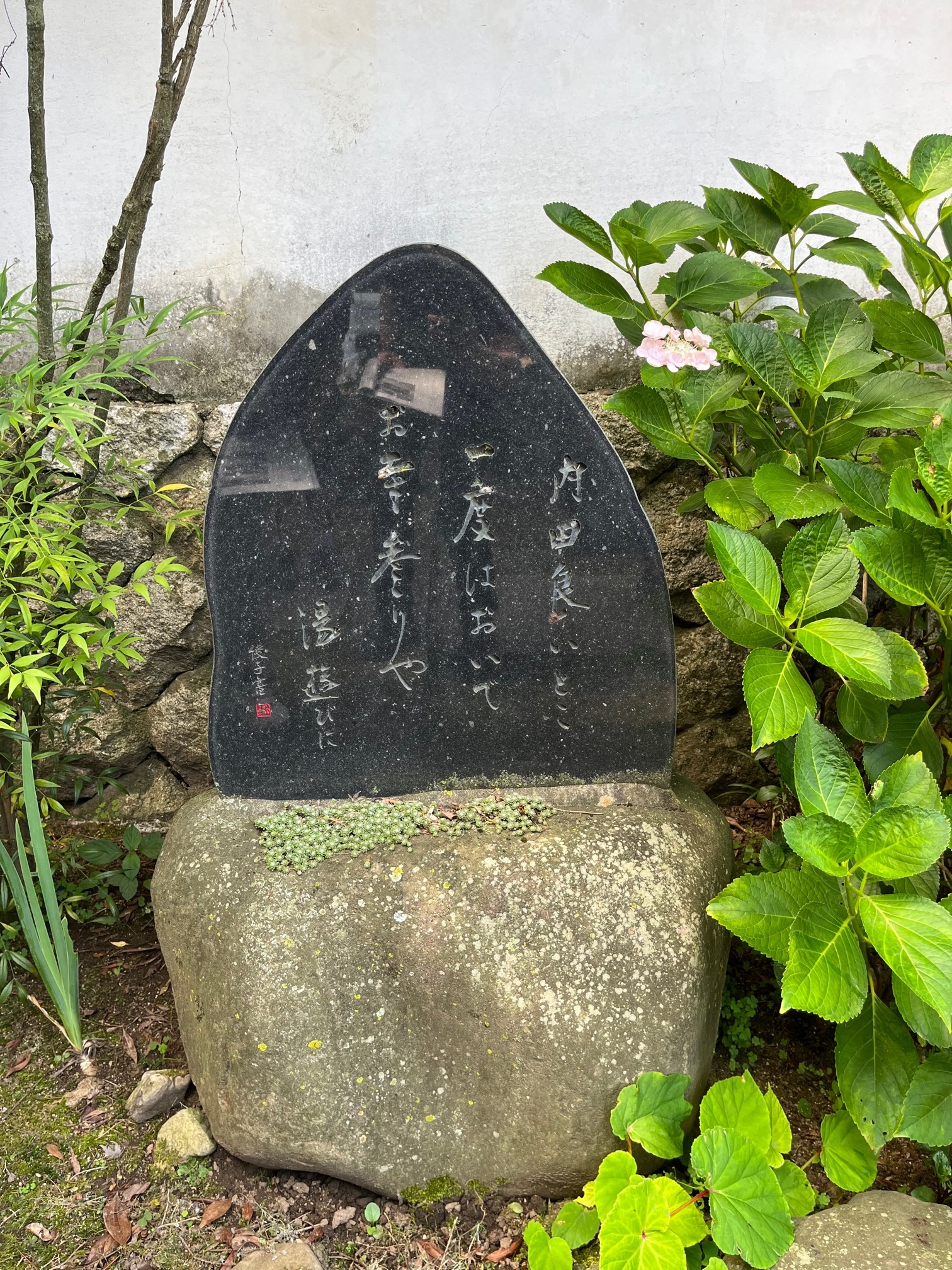 内田良いとこ一度はおいで お寺参りや湯遊びに 常楽寺の石碑。