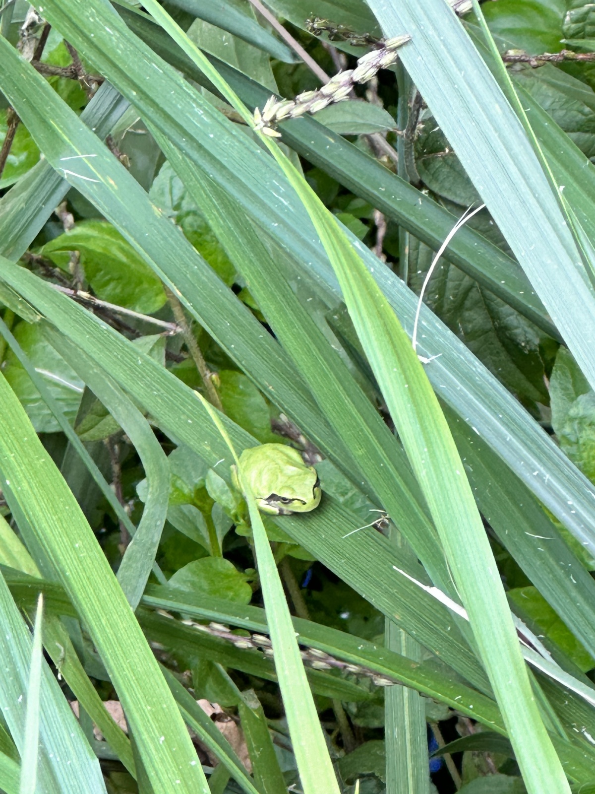 針ノ木沢湧水のあるあがた御前公園にいた生き物たち。 きれいで透明な湧き水を見ていたら、かにを発見。 草の上にはかえるが休憩していました。