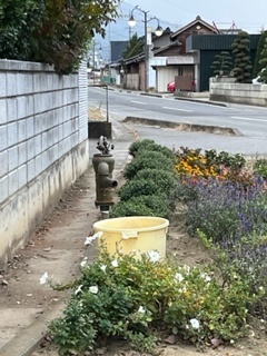 いつも学校前の横断歩道付近のこの花壇には季節の花がきれいにさいています。ここから水をだして水やりをしているのでしょうか?