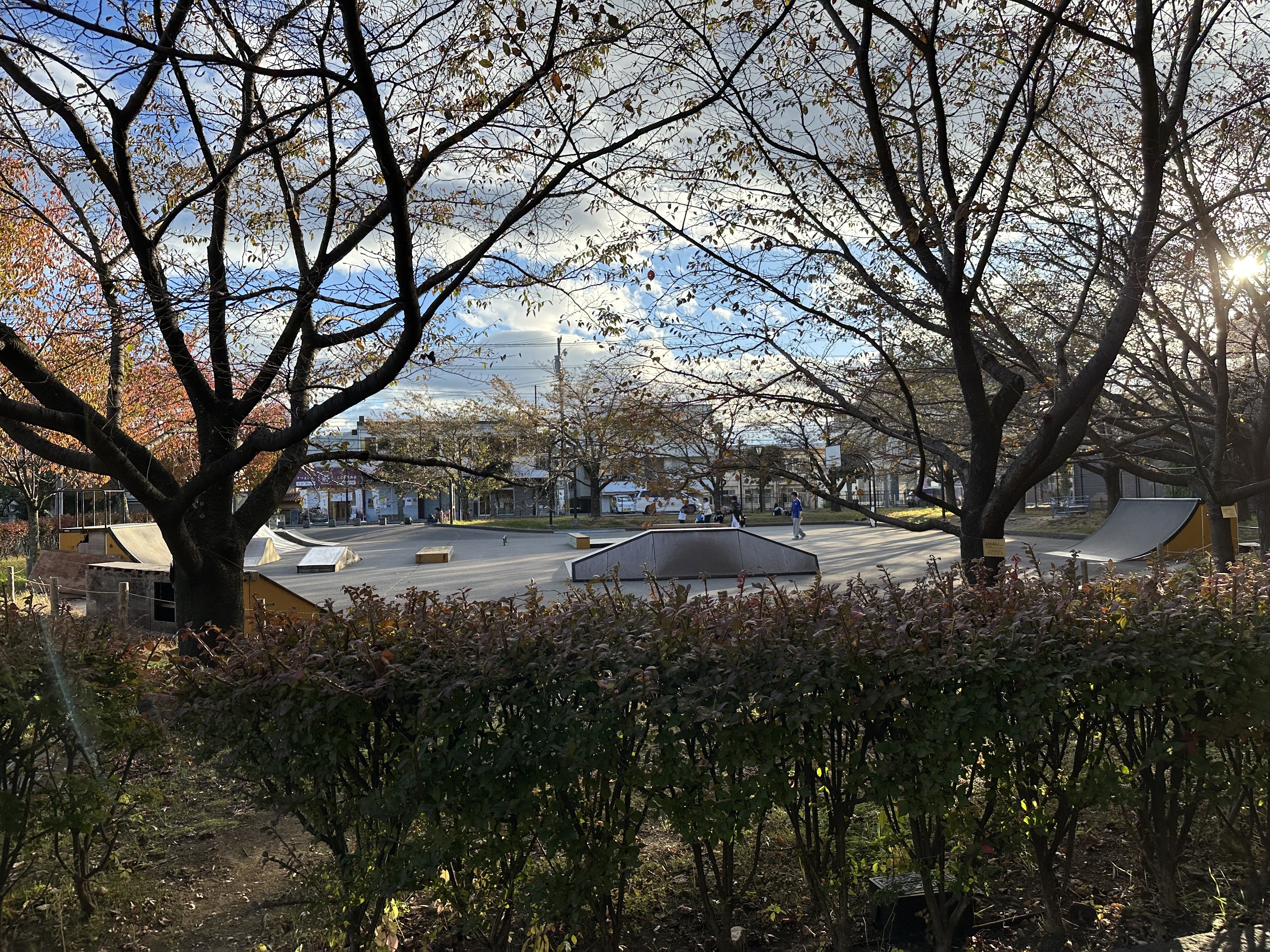 歴史のつまった上田城跡公園ですが、その中にストレッチ遊具があったり、最近流行しているスケートボードのパークやバスケットゴールがあります。歴史と現代が良いバランスで混在し、憩いの場となっています。できあがった経緯が気になります。