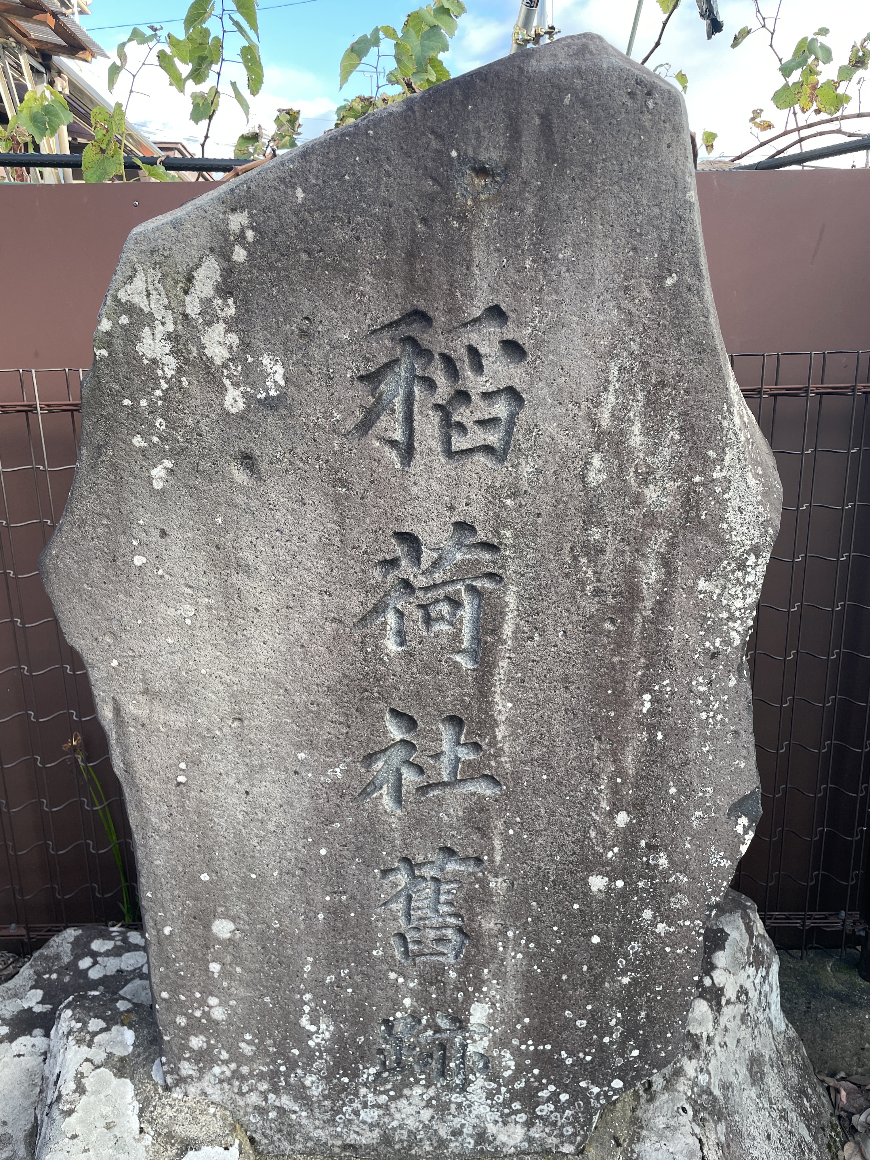 公園横にフェンスに取り囲まれてあった石碑。稲荷神社があった?
