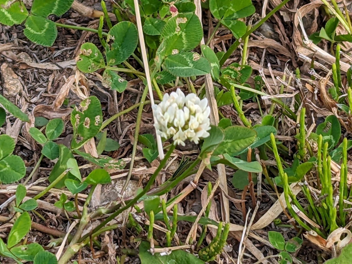 猛暑が終わり、なぜかこの時期にクローバーやオオデマリの花が咲いている。 モンシロチョウも飛んできていた。 他にも、季節外れに咲く花が多いのかが気になった。