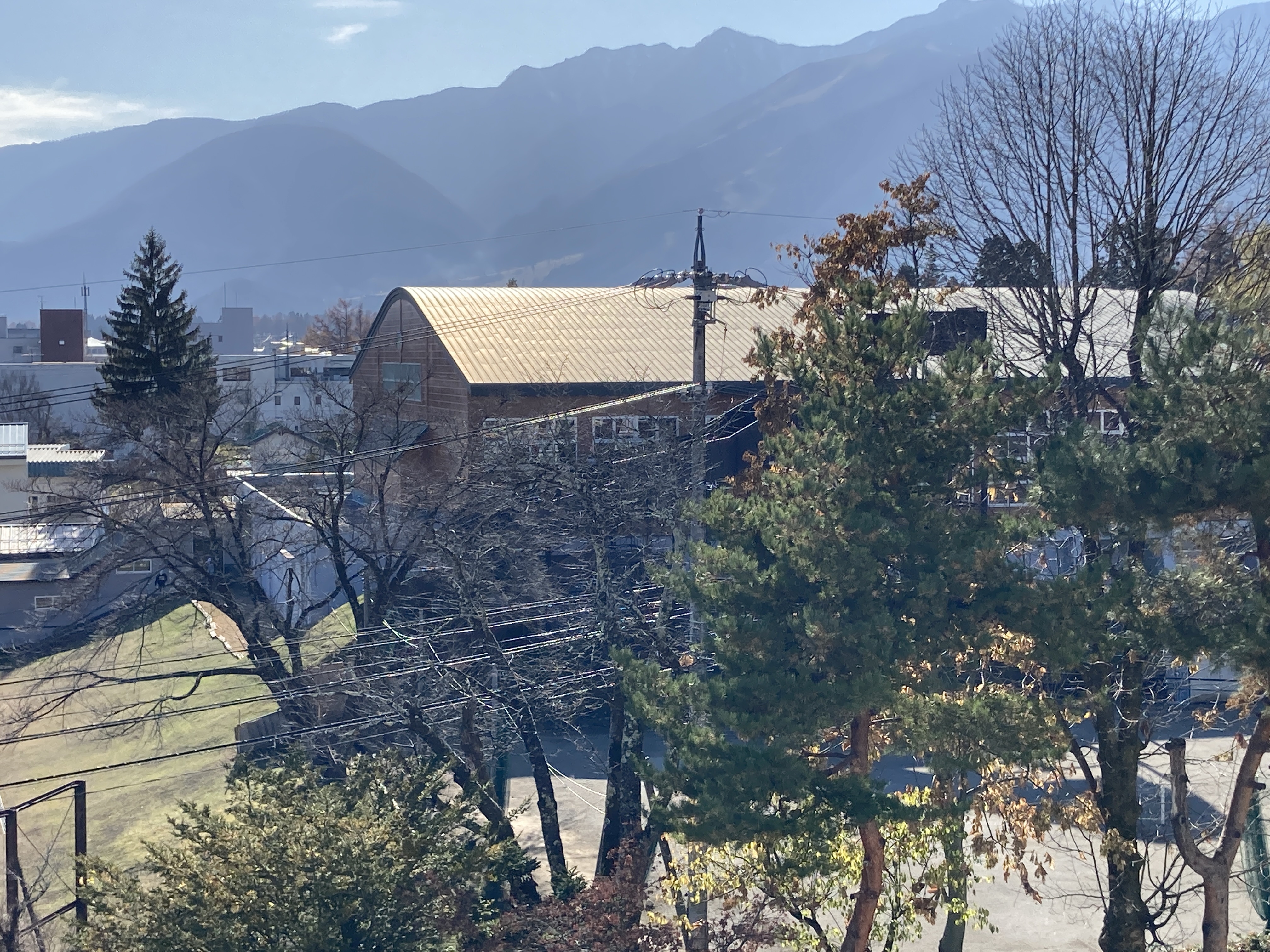 まだ全ての葉が落ちていないため、見にくいが白馬高校の向かいにある白馬北小学校にはジャンプ台が。 冬場になると、児童たちがポンポン飛んでいる。授業中、外を見ると児童たちが楽しそうに飛んでいる姿は慣れてしまったが、初めて白馬高校を訪れた3月のあの日は、非常にびっくりした・・・。 白馬高の生徒曰く、「あんなのは慣れだよー。昔ね、ナニコレ珍百景にも出たことあるんだよね。」と。