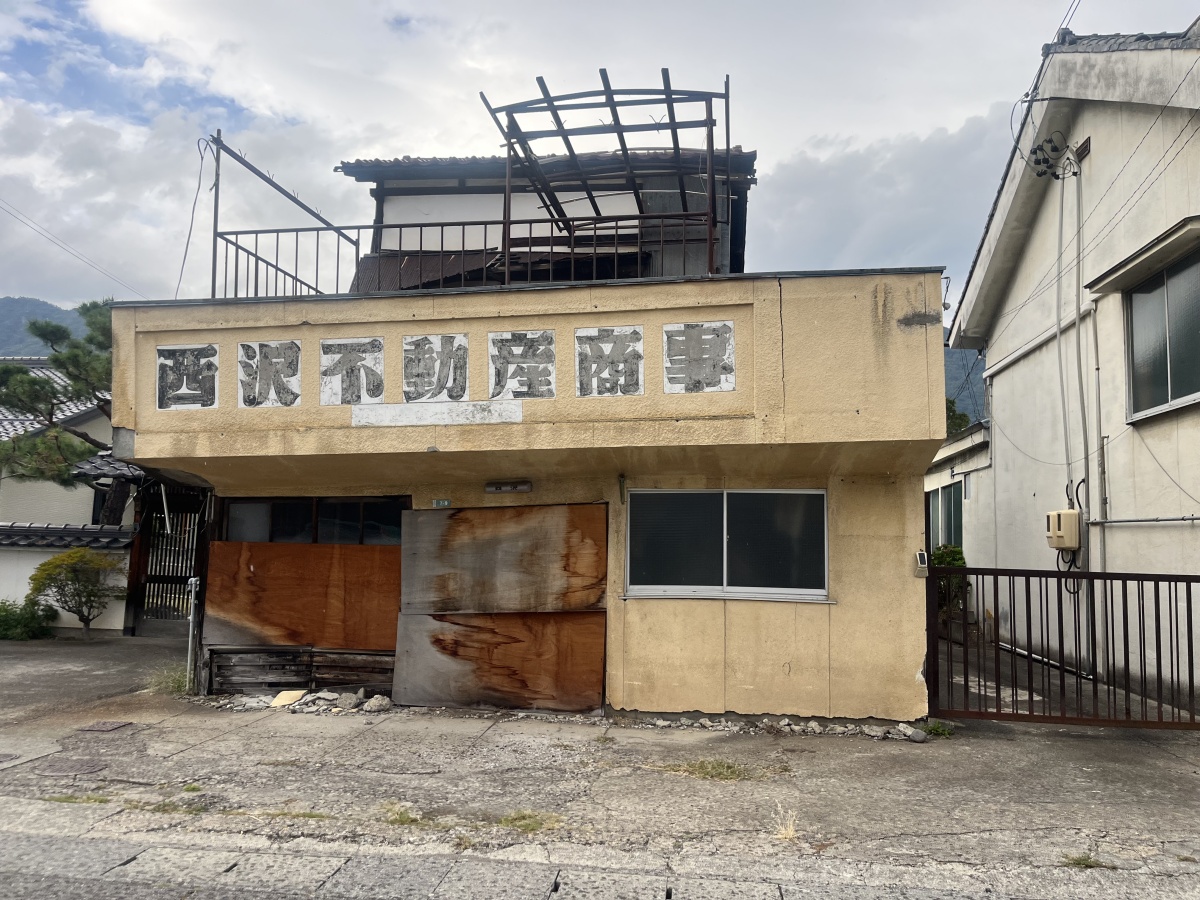 斜めに傾いている、西沢不動産商事。