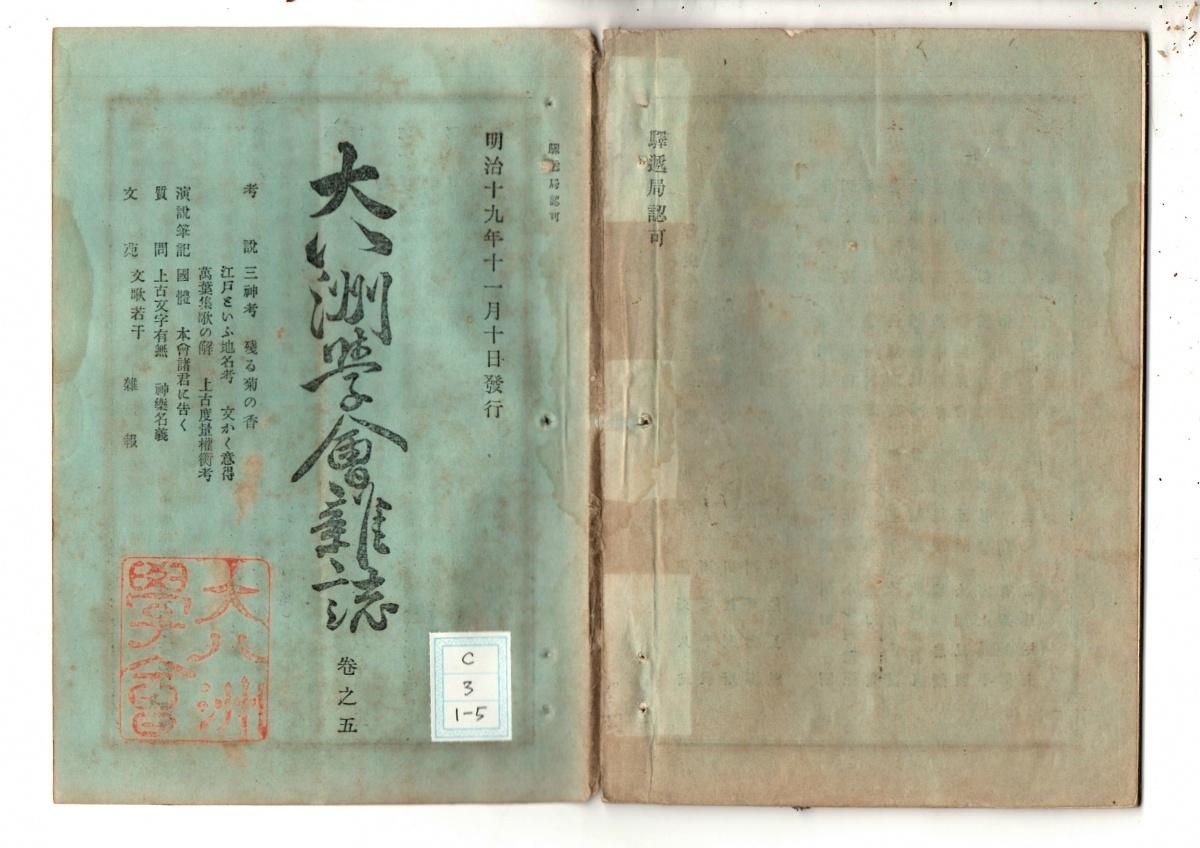 [dc-3-9-6] 東洋学会雑誌第壱号 (1886)
