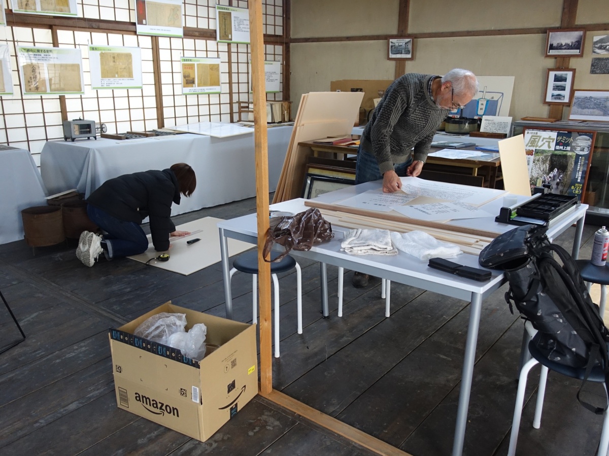 藤本蚕業プロジェクトでは、藤本蚕業歴史館の館内の環境整備を進めています。開館の2009年から約15年が経過し、社会状況も大きく変わってきました。誰もがスマホを持つようになり、学校では児童生徒がタブレットを使うようになり、人々や学校からいつでもネットからアクセスできて、現地を訪れても見学者の関心に応えられる館内の整備が求められます。その手始めとして何がどこにあるかすぐにわかるサイン、展示パネルなどの設置を行っています。