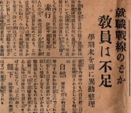 新聞記事より抜粋しました。教員のなり手が減っていることを指摘している。現在でも教員の成り手が少ないという課題があるが、1933年時点ですら不足していたということに驚きだ。当時は今よりも子供の数が多いことも教員不足問題を助長していたのかもしれない。