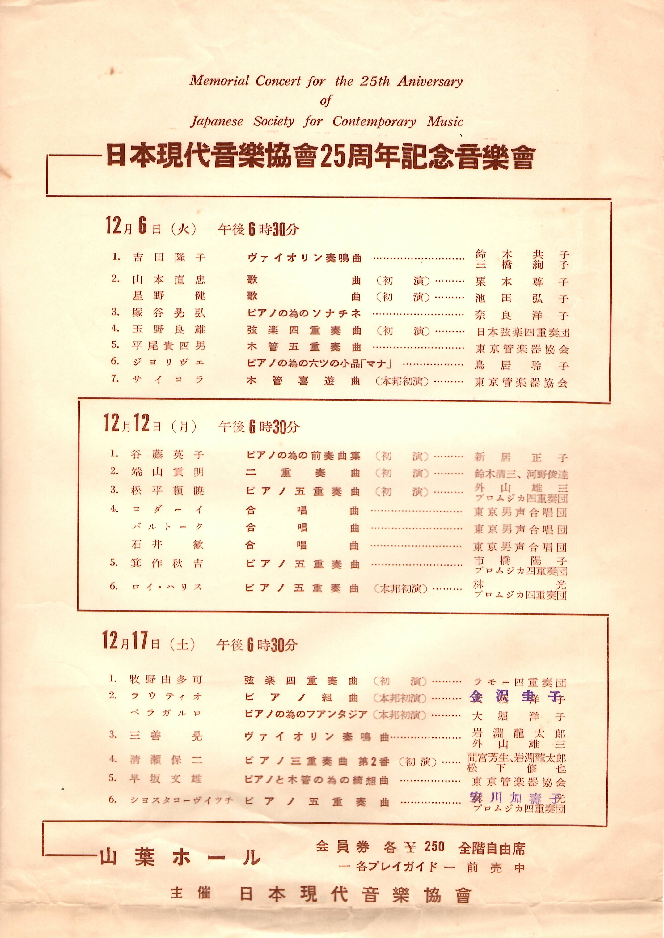「日本現代音楽協会25周年記念音楽会」プログラム