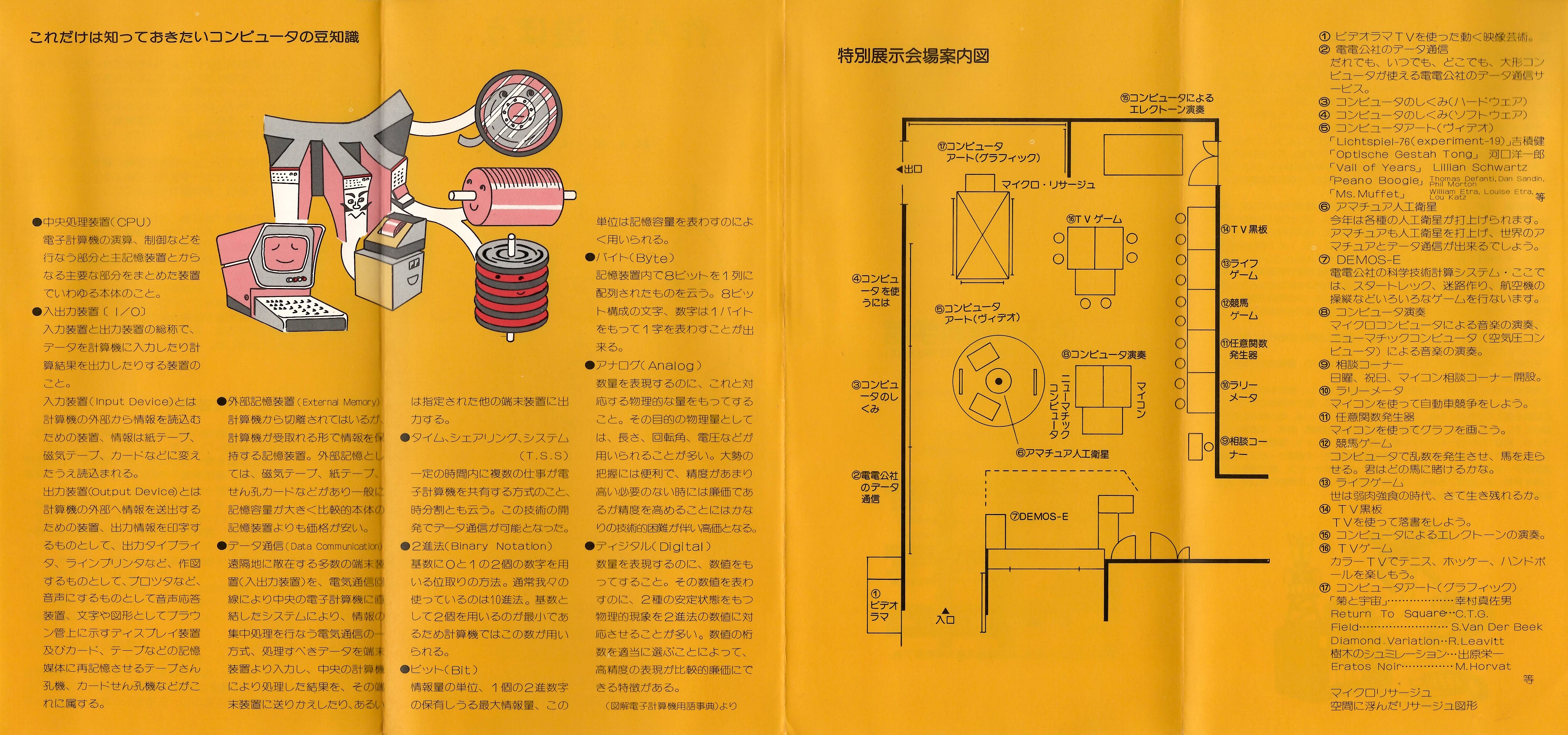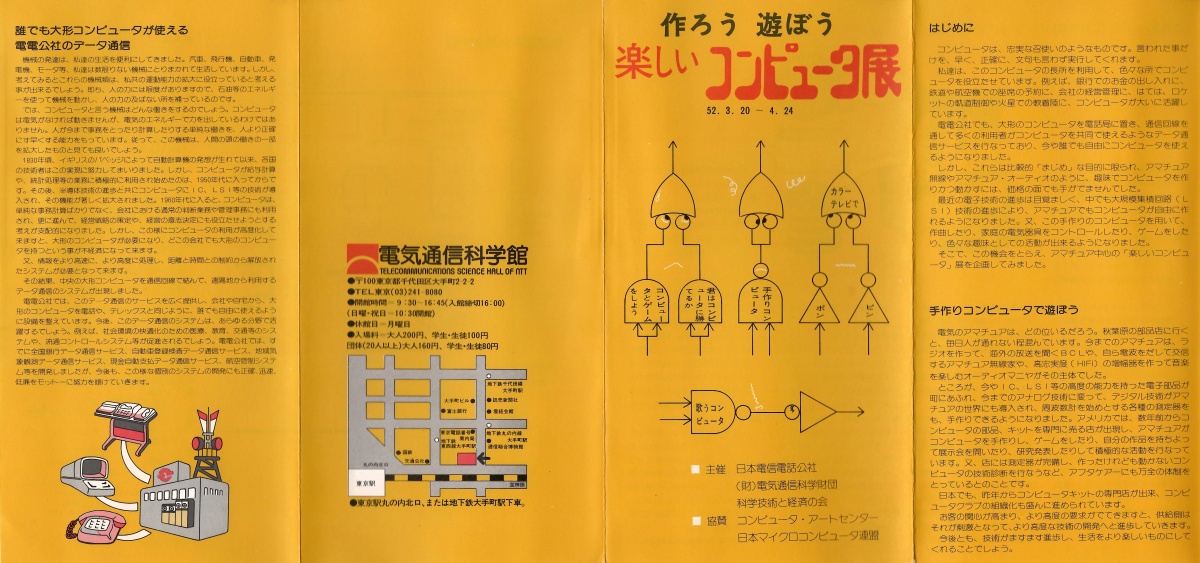 1977年に電気通信科学館(現:NTTデータ大手町ビル)開催されたコンピュータ展のリーフレット。表紙は電子回路図をキャラクター化したもの。端山氏はこの展示会の企画・制作に携わった。