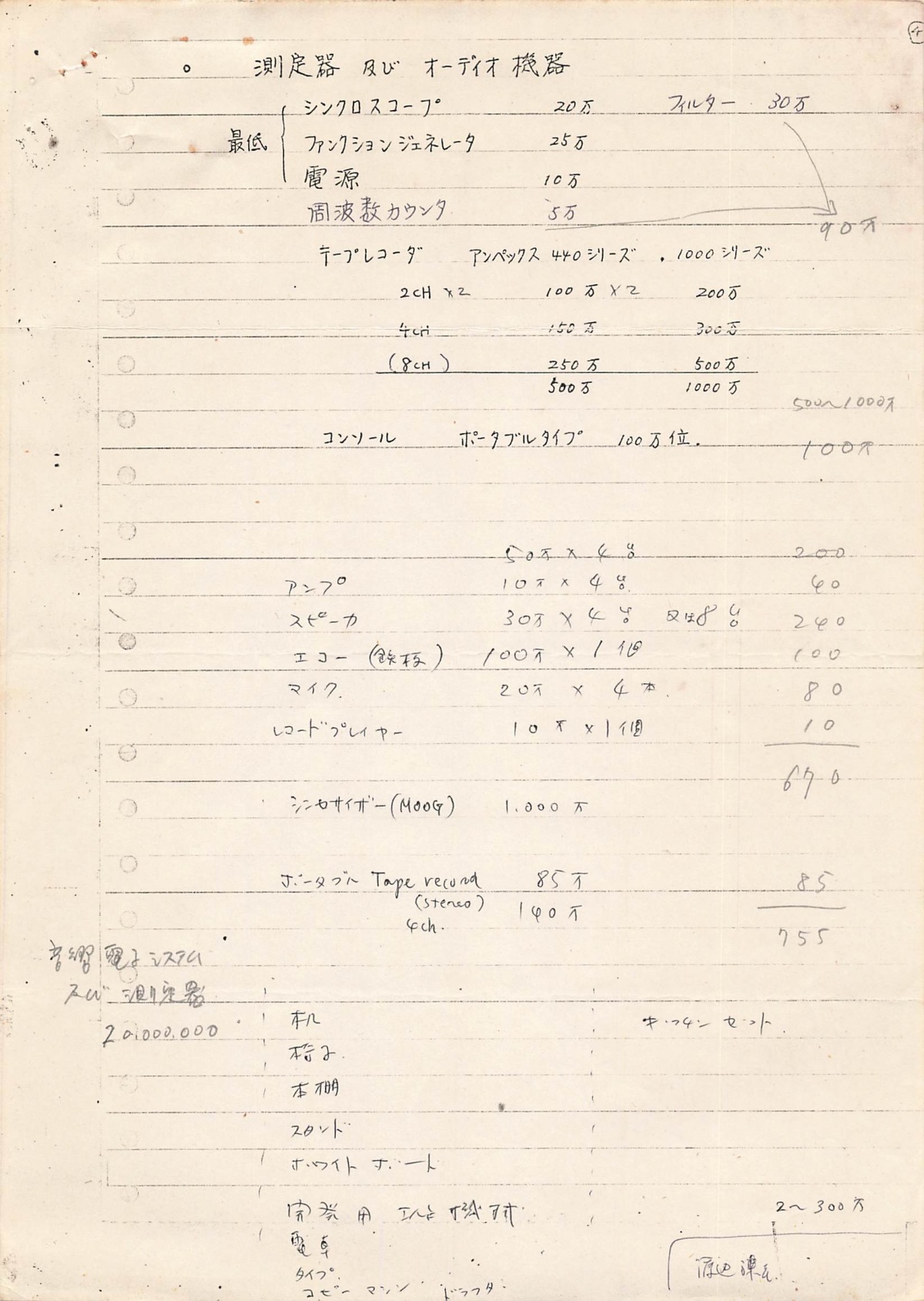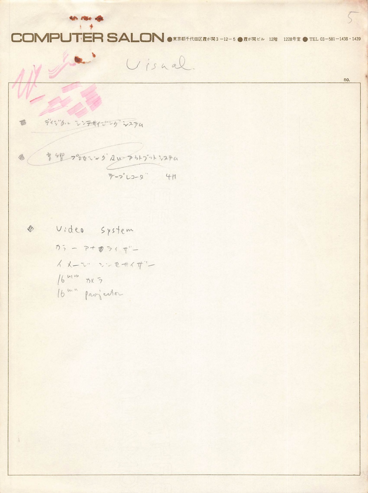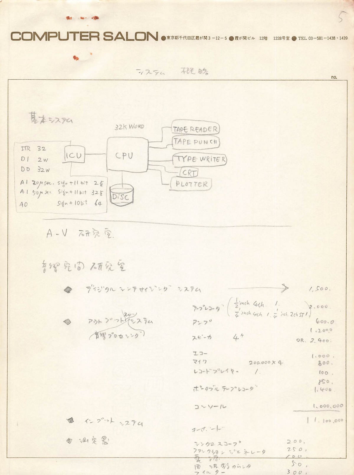 ひとまとめにダブルクリップで留められていた文書。「企画書内容」と記されている。1973年に開催した「コンピュータ・アート展」に向けての企画書と思われる。富士通製のFACOM U-200を使った展示のための見積書が添えられている。
