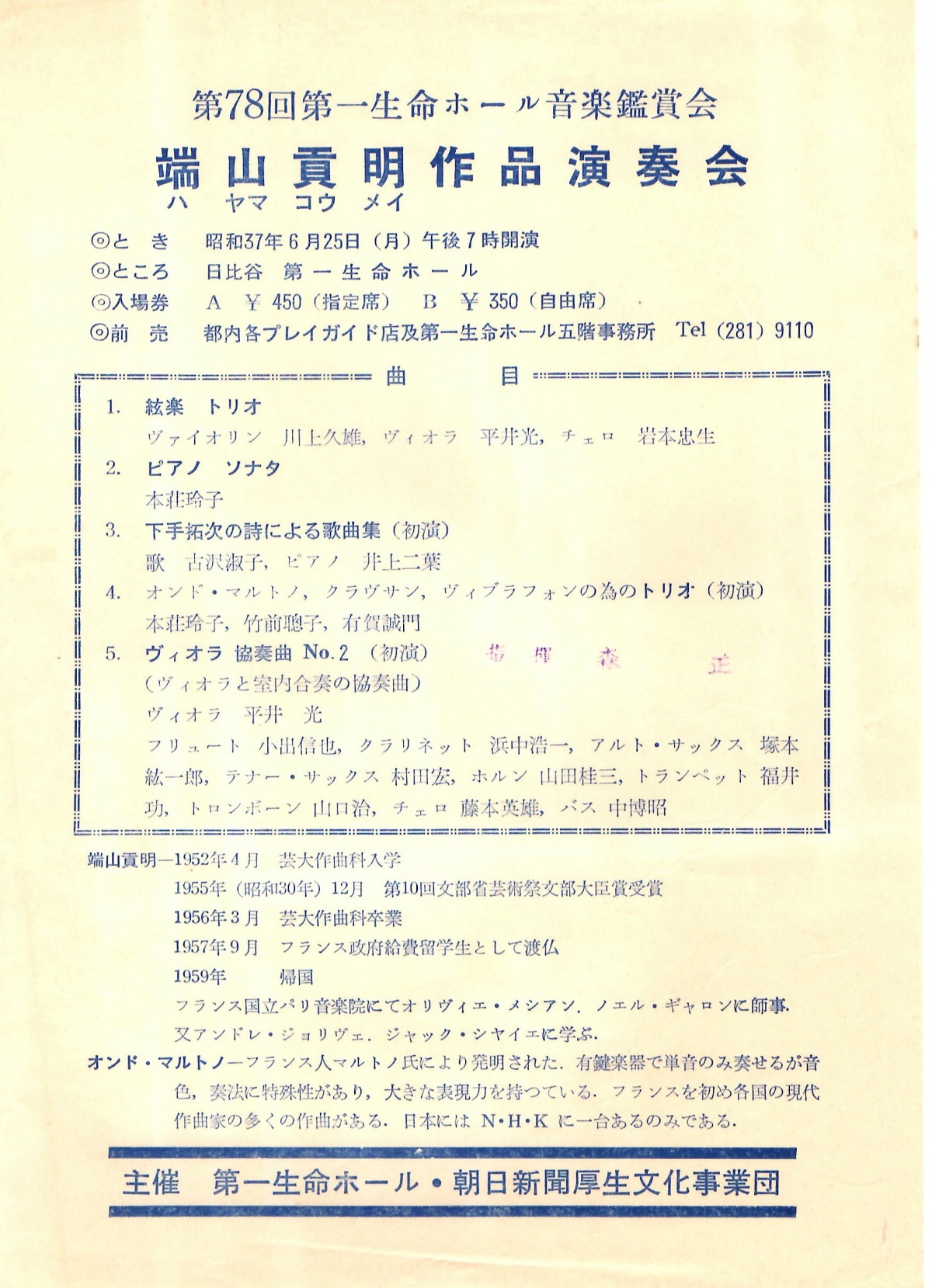 主催:第一生命ホール、朝日新聞厚生文化事業団