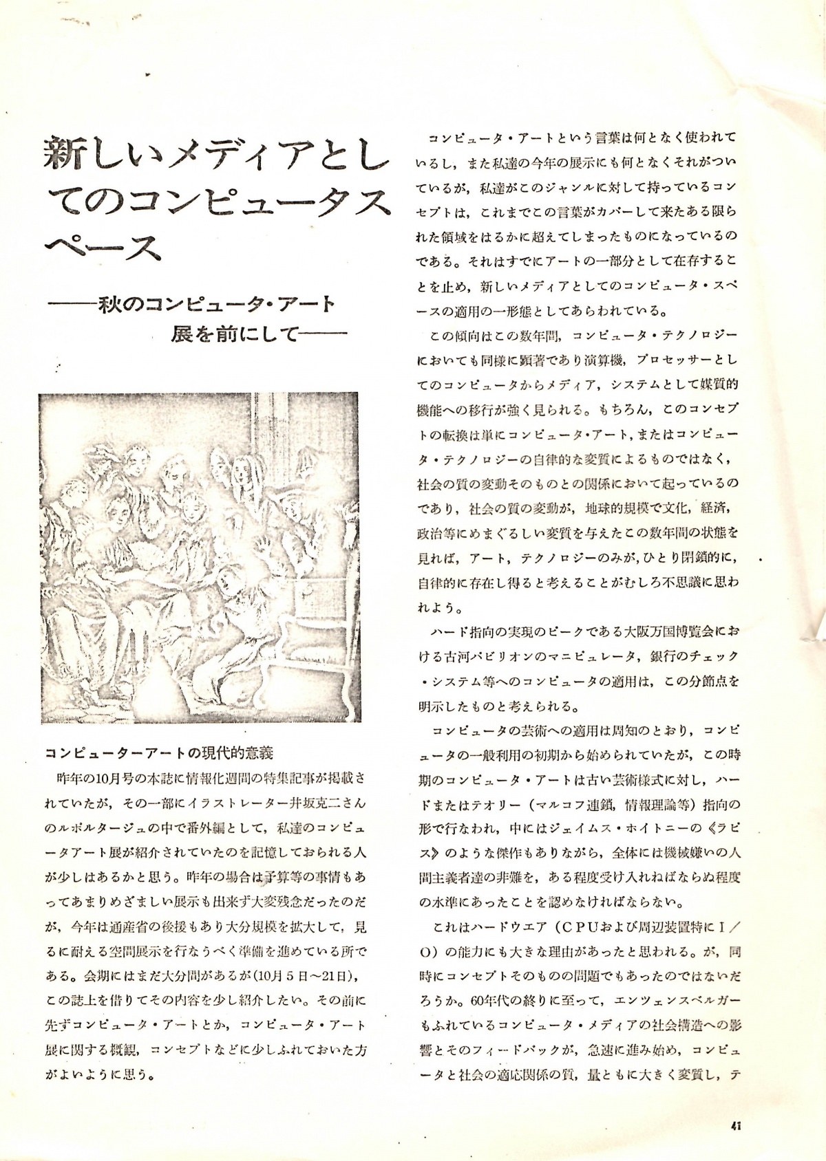 「新しいメディアとしてのコンピュータスペース―秋のコンピュータ・アート展を前にして」