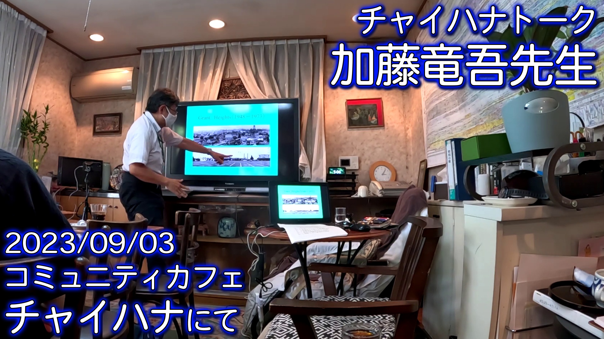 2023/09/03 コミュニティカフェチャイハナ光が丘にて、「光が丘学」で知られる加藤竜吾先生をお招きし、光が丘の歴史、特にグラントハイツ期について、講座を行っていただきました。