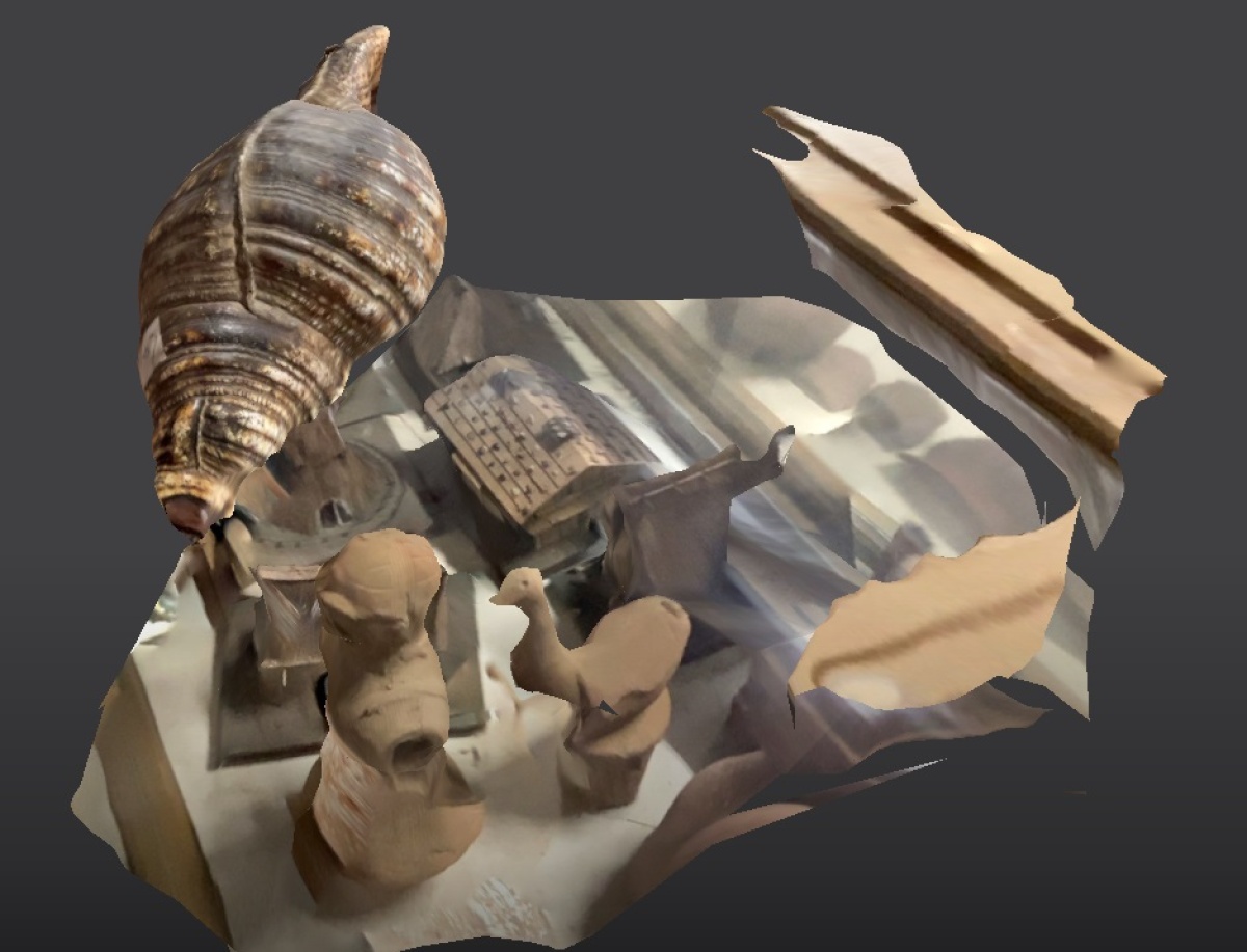 展示ケースの中を覗いた風景。物体が空中に浮遊しているようでファンタスティック!