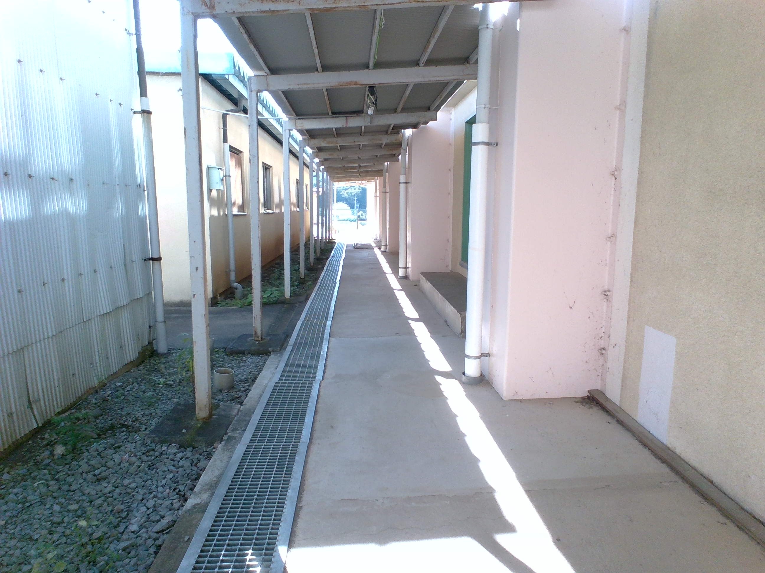体育館横の学校らしい歴史ある渡り廊下! あまり、人が通らず、夜見ると少し怖い所があり 明るいときに見ると学校らしい一面がみれます!! 横には部室もあったりして、今は使われていないので 昔使っていたまま、放置されています