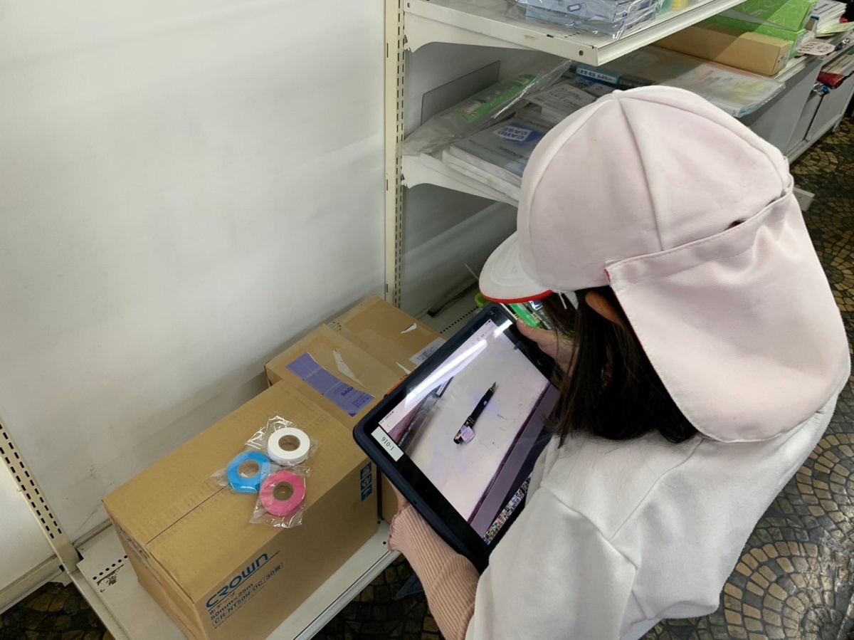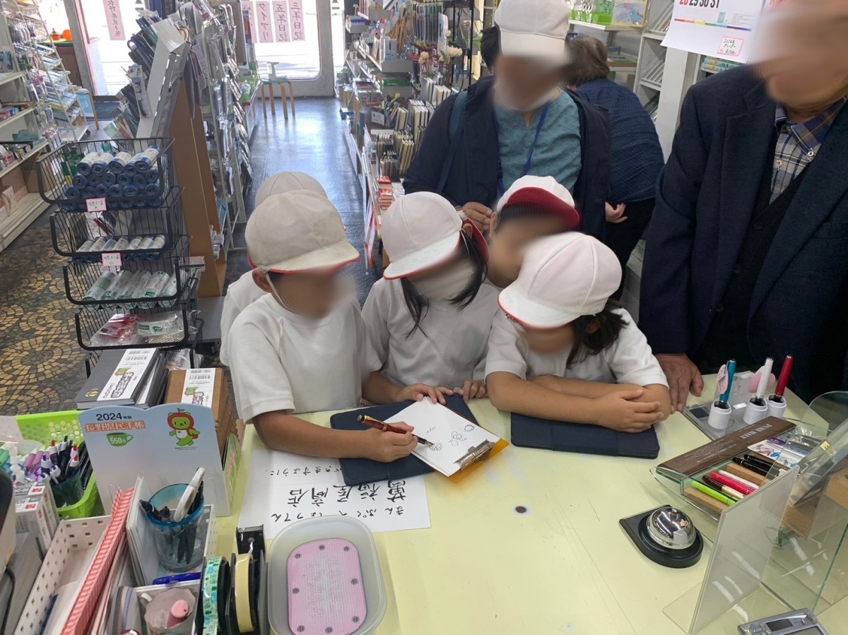 10月27日に須坂小学校で行われた地域探検の様子を紹介していきます。 “萬福屋商店”に行った際の様子です。 お店の方に説明をしてもらい、初めて触る万年筆に興味津々でした。ノートや消しゴムなど、それぞれが思い思いに撮影をしていました。