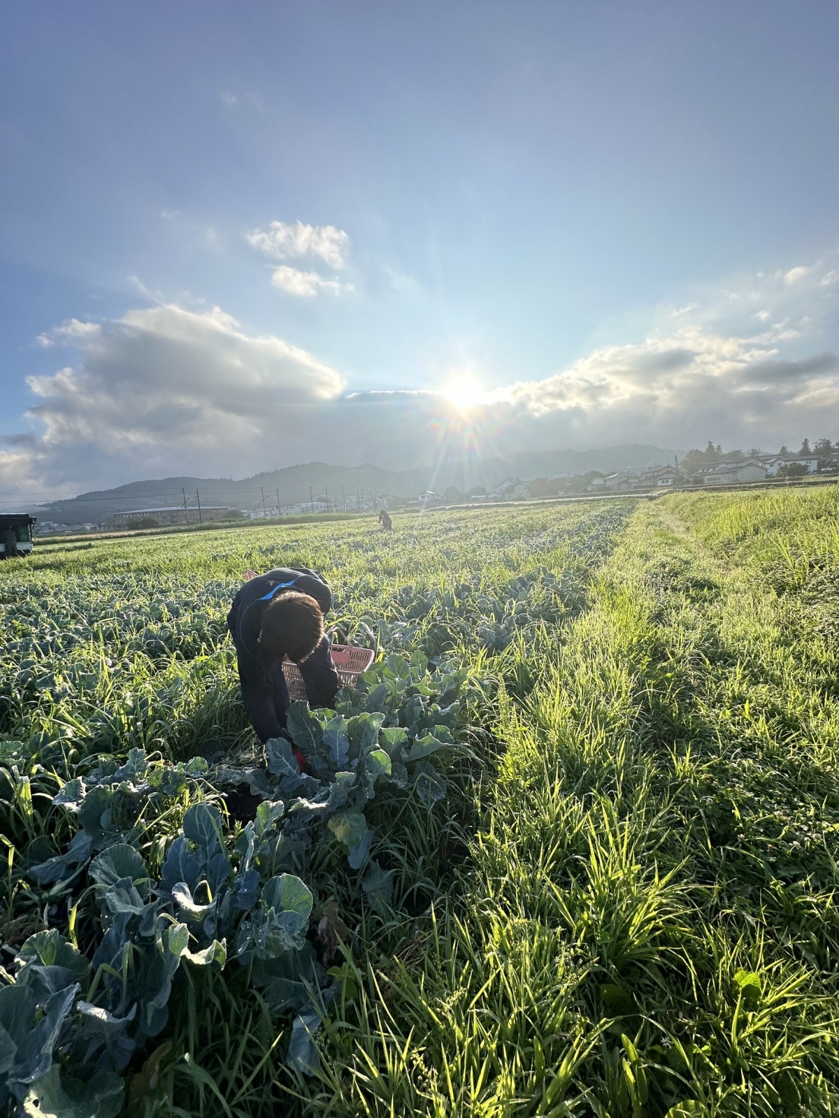この写真は私が実際に農業サークルでブロッコリーを収穫している時の様子である。ブロッコリーの収穫は難しいことではないが、規格が厳しく基準に満たないブロッコリーは売れないそうだ。そのため、そのブロッコリーをいただいていたのだが、想像以上に美味しくこの規格外のブロッコリーを活かしたいなと感じた。