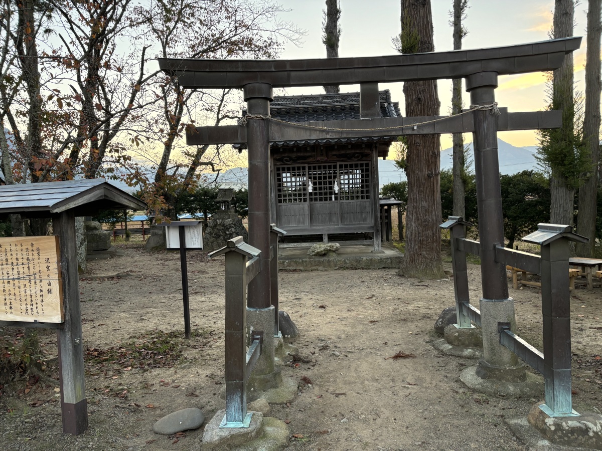 御神体を「泥」とする、古く小さいお宮。祭神は建御名方富命(たけみなかたとみのみこと)で諏訪大社と同じである。泥は稲作の元となる大地であり、大地を御神体にしているのは、生島足島神社と同じである。泥宮のすぐ横には「上窪池(かみくぼいけ)」というため池があります。