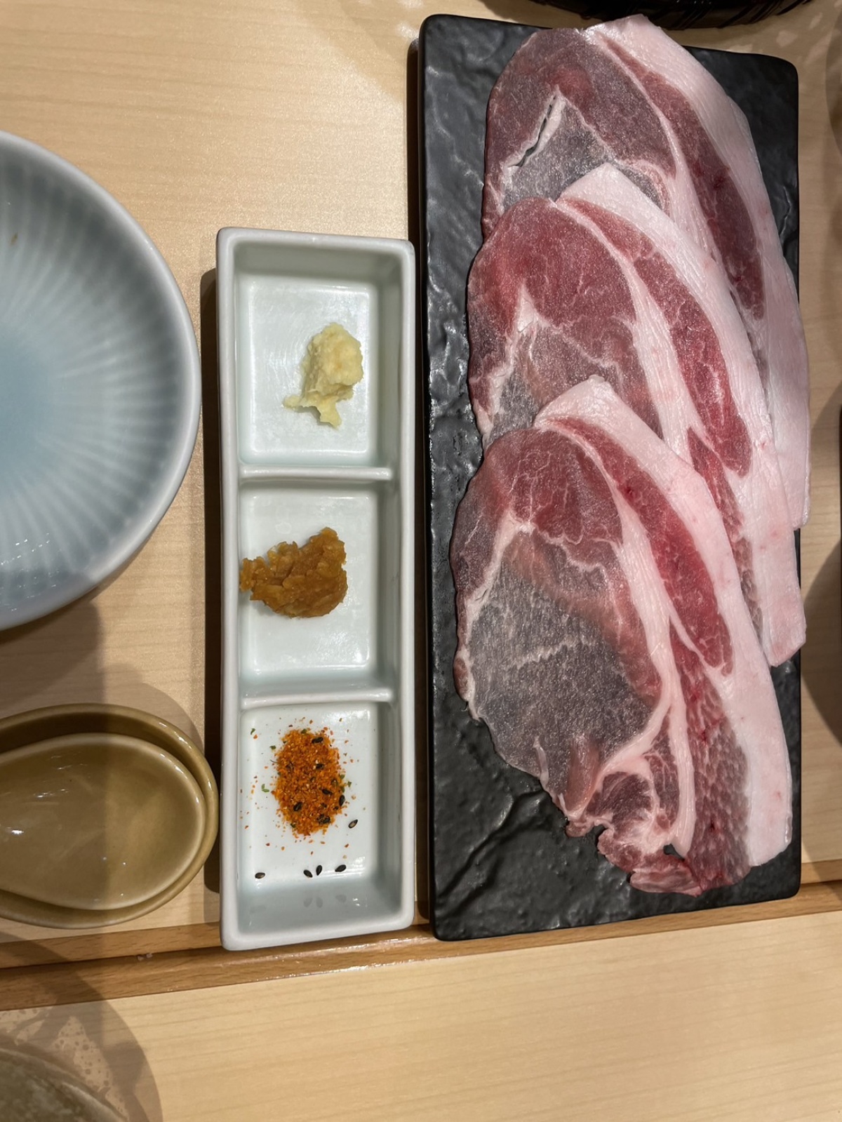 三種類ある薬味の中央にあるのはなきりゅう味噌で、なきりゅうというお酒から作られたものになっています。